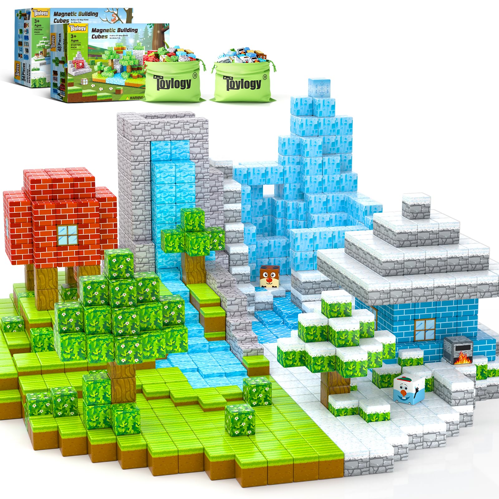 - 【TODDLER & BEGINNER TOYS MINE WORLD MAGNETIC SET】Unlike other magnet toys on the market, our magnetic cubes kit with internal magnets, which is easier for toddlers ages 3+ to stick the cubes together and make builds sturdy. And round edges and the right size won't hurt little hands. Perfect STEM toys help kids gain a deeper understanding of the structure world and learn about magnetic properties. Recommended toys gifts for toddlers and kids ages 3-8.
