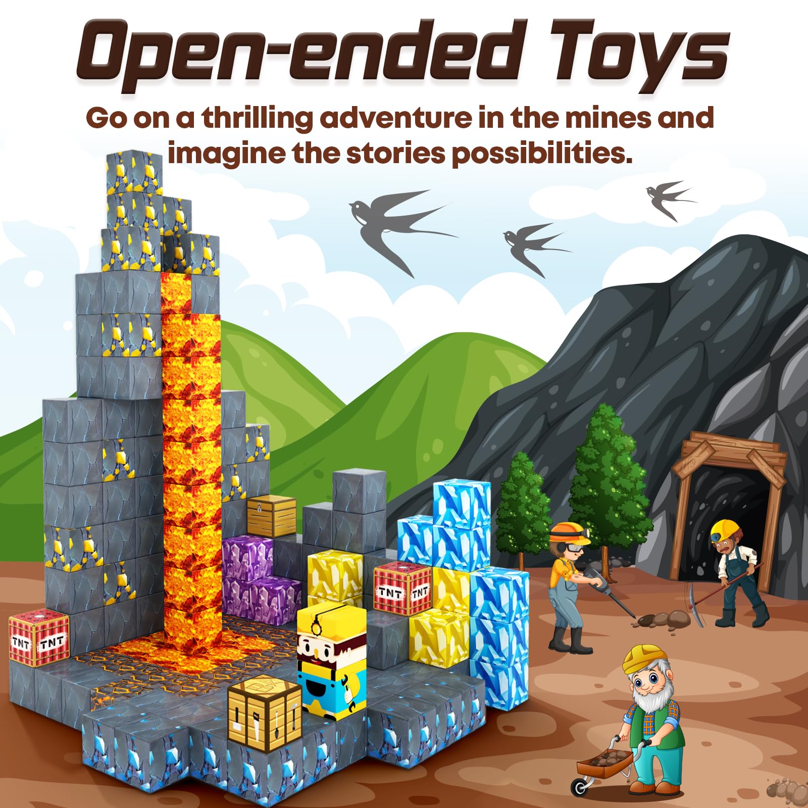 - 【CONSTRUCT MINE MAGNET WORLD® KIDS GAMES】Enter the Mine Sword Caverns with this magnetic blocks, where adventure and treasure await! Use kids’ creativity to explore cave war, and challenge kids to see who can conquer it. Different from other 6 magnets inferior blocks, Toylogy blocks with 8 magnets, compatible with 1IN blocks in the market, unlock more freedom to build.