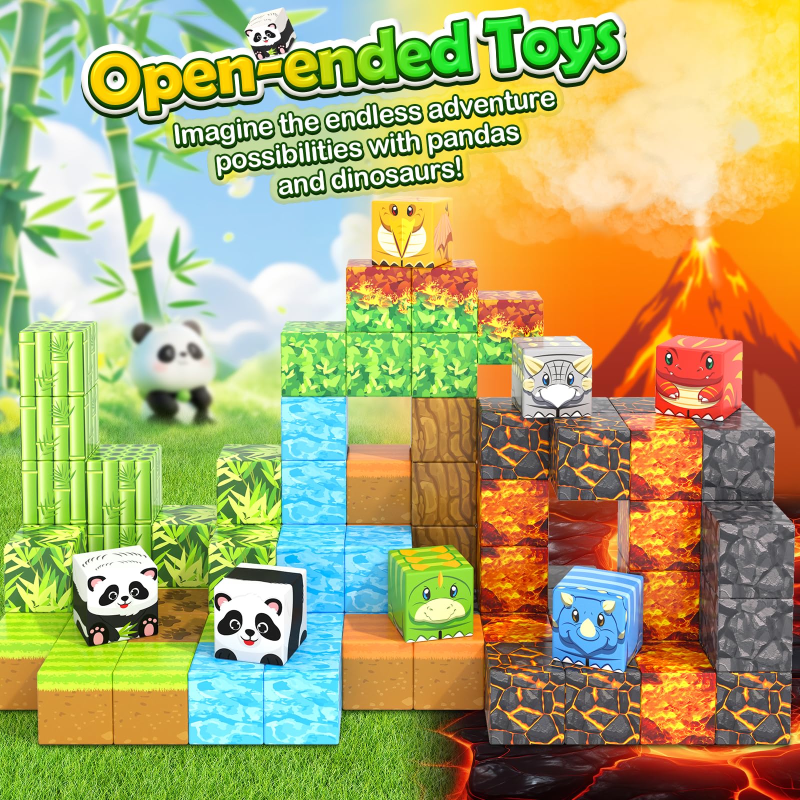 Magnetic Blocks-Build Mine Magnet World® Dinosaur Panda Toys Kids Games, Toddler STEM Educational Sensory Dino Toys for Kids 3-5 5-7, Birthday Gifts for 3 4 5 6 7 8 Year Old Boys and Girls